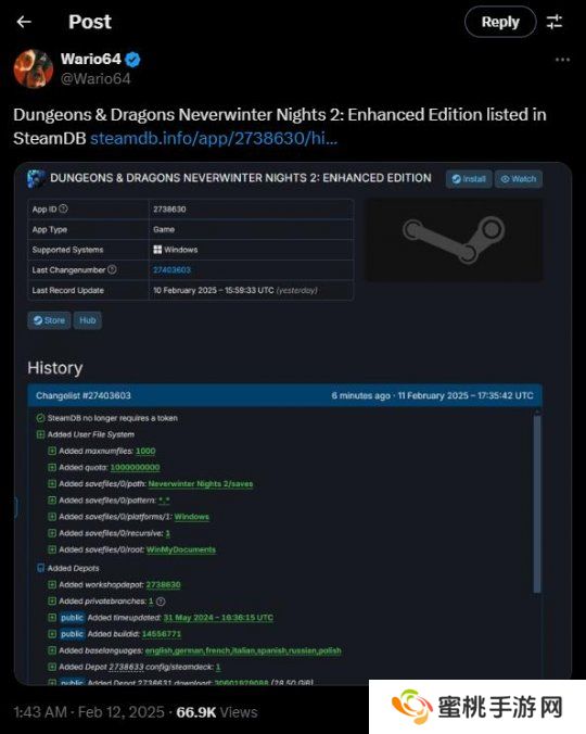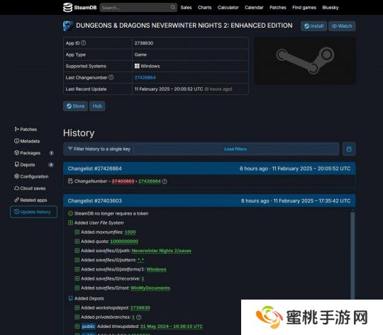 SteamDB数据显示 《D&D:无冬之夜2 增强版》后台列表更新