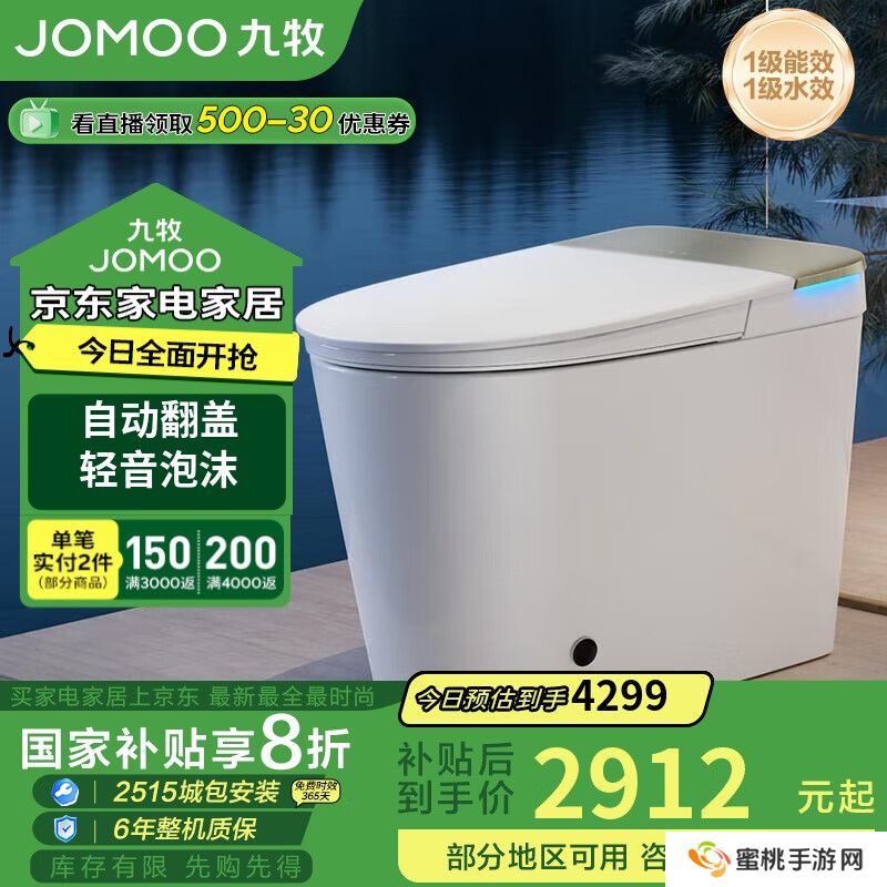 京东九牧 无水压限制 智能马桶 魔力泡低音冲 自动翻盖坐便器 ZS770P 305 坑距国补后 2912 元领 360 元券