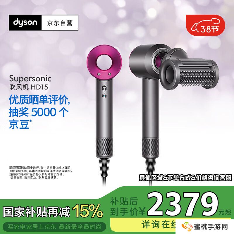京东戴森 HD15 新一代吹风机 Dyson Supersonic 电吹风 负离子 速干护发 紫红色国补后 2379 元直达链接