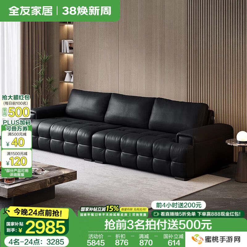 京东全友家居 艺塑极简黑色直排沙发 意式轻奢 劳伦斯真皮沙发 黑色 | 牛皮 | 左 2 + 右 2 四人位 3.04m 国补后 2985 元直达链接2025 年国补现已正式开始,本站为大家汇总国补领券地址,买数码家电之前记得领取: