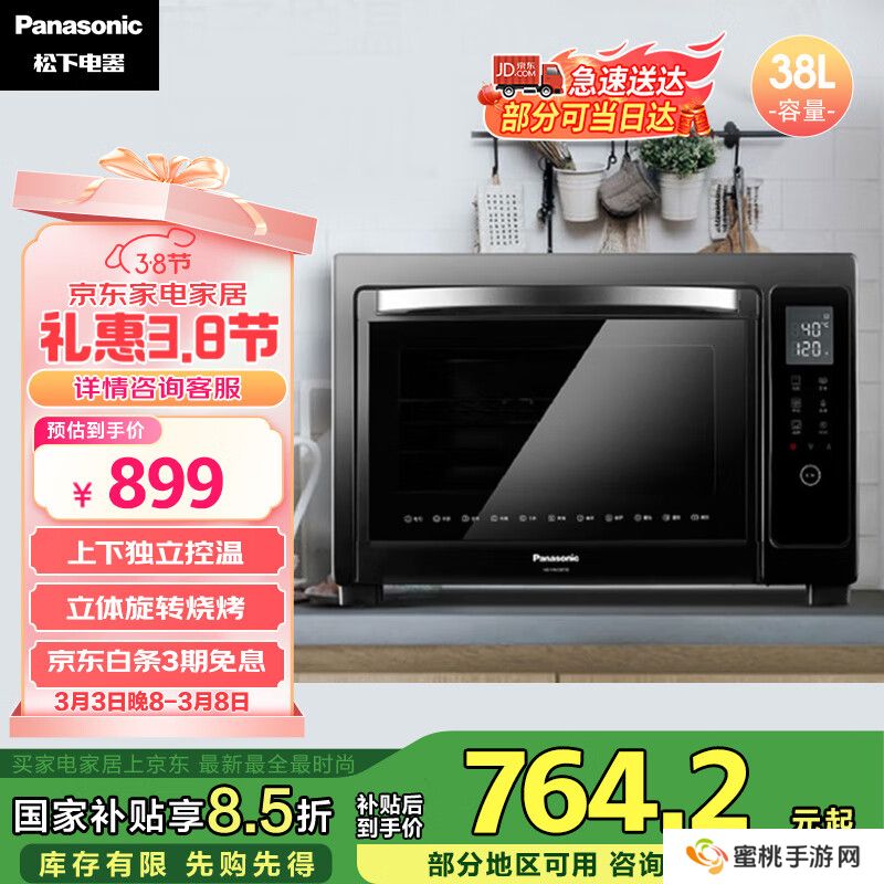 京东松下 家用电烤箱 电子温控 多功能烤箱 上下独立温控 自动预热 38L 容量国补后 764.2 元直达链接