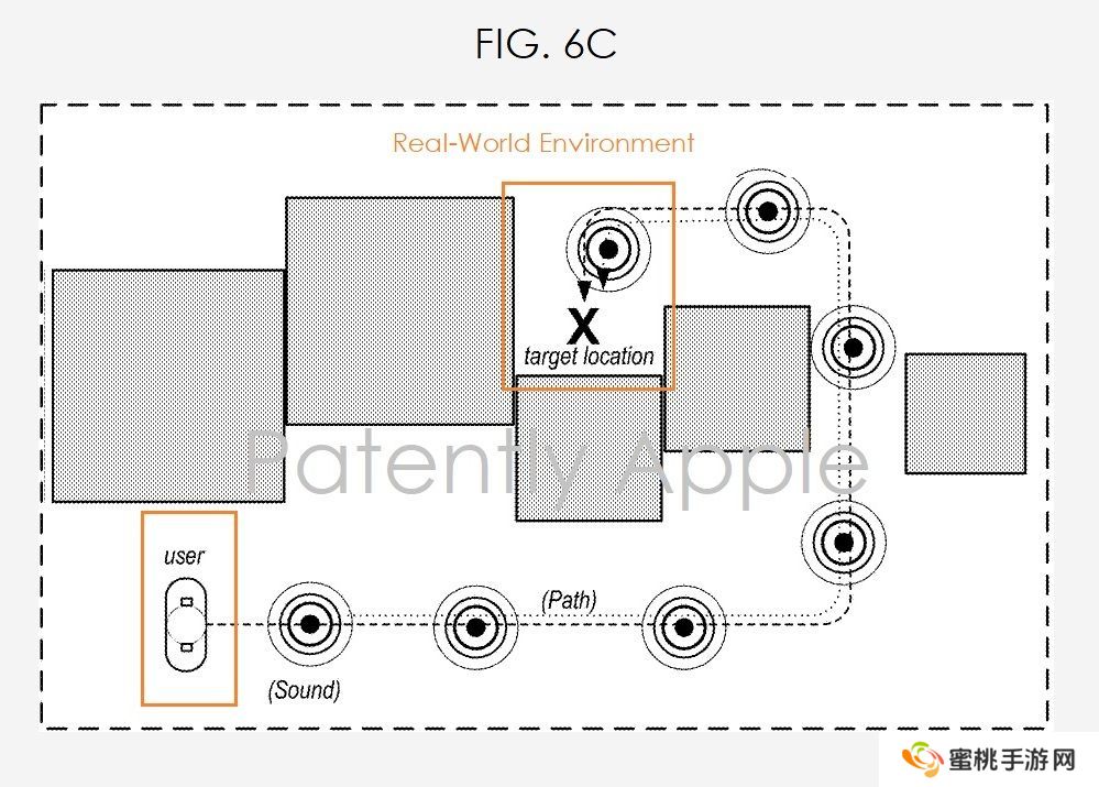 根据专利描述,该系统通过双耳音频设备播放方向性音频,为用户提供导航信息,用户无需依赖语音指令,而是通过音频的方向和距离感知路径。
