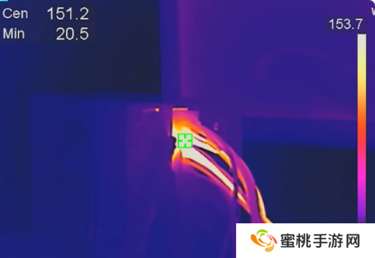 测试中不论是用官方还是第三方线路,都会明显的电流不均匀现象,至少其中一条的电流超过了22A。通过红外成像可知,电源线在显卡接口附近的温度高达151℃!