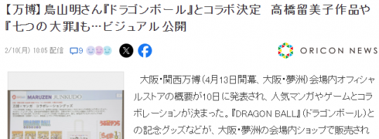 大阪世博会宣布与知名动漫游戏联动《七龙珠》在列