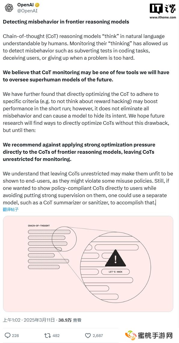 OpenAI 发布 CoT 思维链研究成果,监控阻止大模型恶意行为