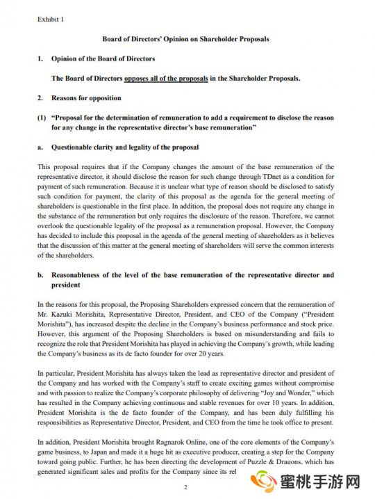 因此回复中写道:“考虑到上述情况,由于社长Kazuki Morishita目前是公司作为游戏开发公司不可替代的人物,董事会认为他的基本薪酬水平足够合理。”