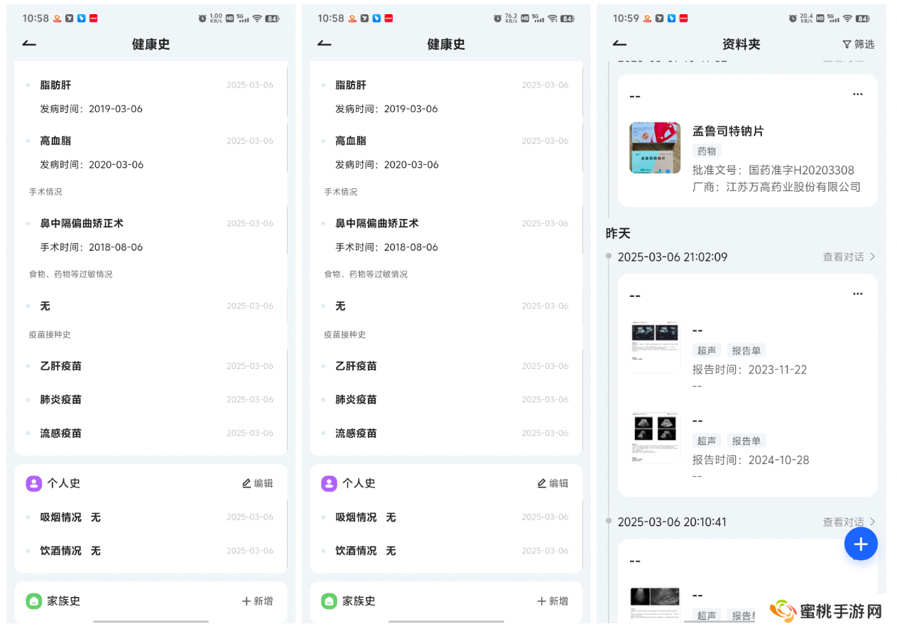 再比如讯飞晓医还有个性化的健康空间,这里汇总了你上传的所有病历、报告单、使用的药物和体检报告等信息,同时你还可以在这里完善你的健康史、包括既往病史、个人吸烟和饮酒情况以及家族病史等,这些都会成为你向讯飞晓医咨询时重要的参考信息。