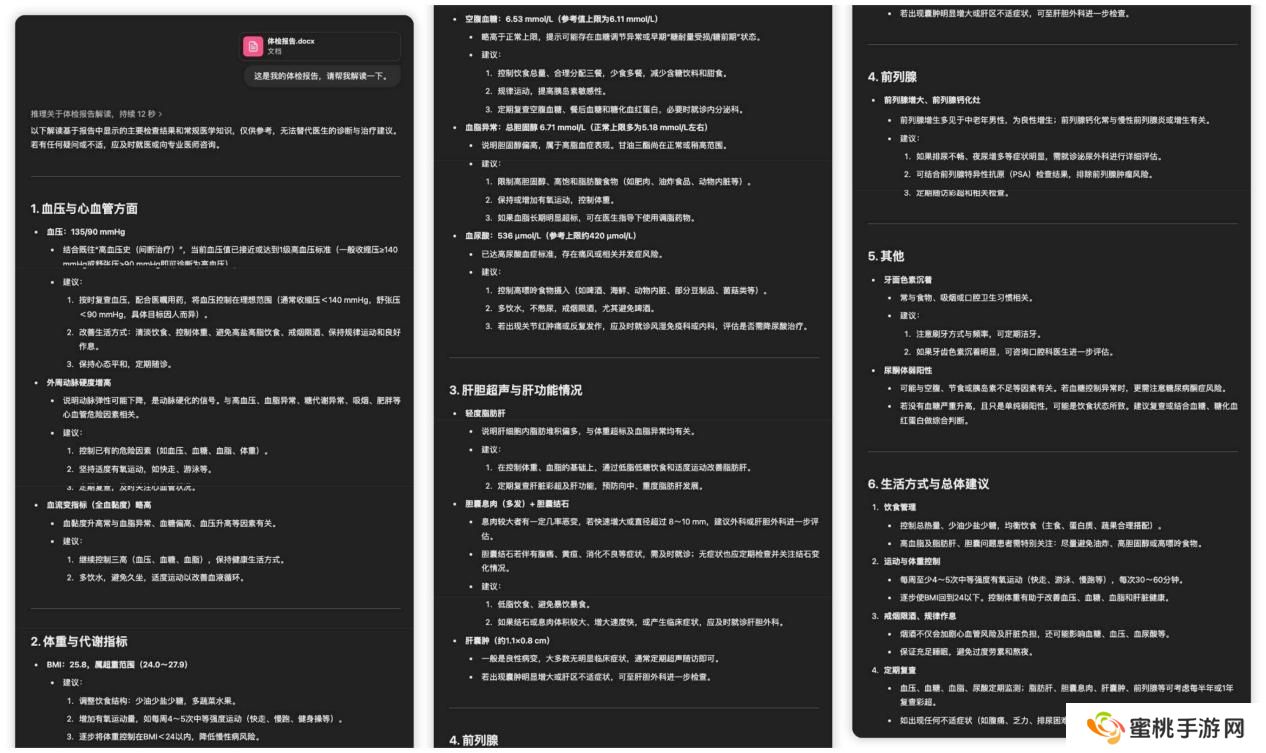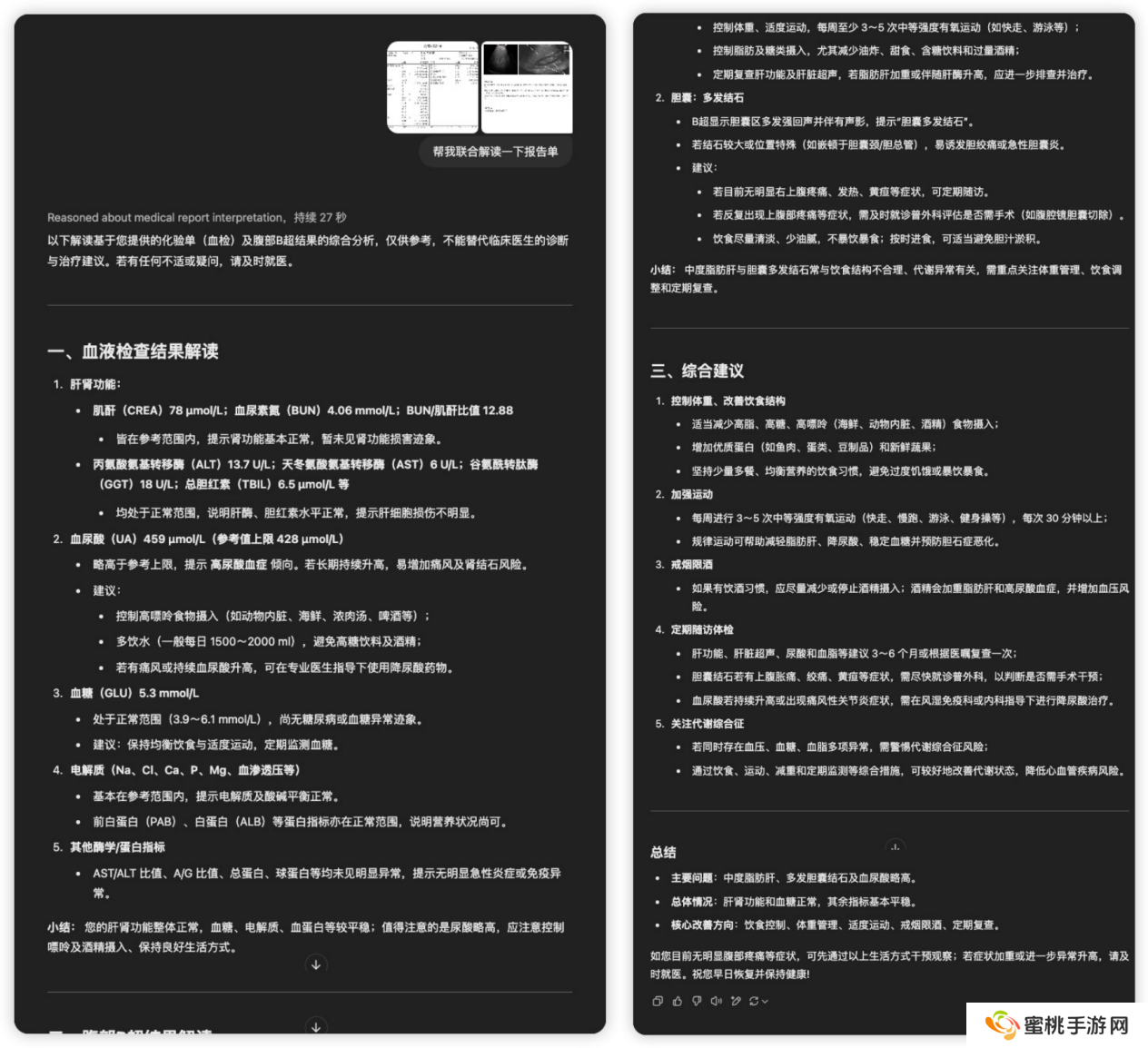 再看 GPT-o1,这次 GPT-o1 给出的解读能直接找出报告中的异常项目,相对来说实用性比 DeepSeek 要好一些,也有针对异常项目的应对建议,和 DeepSeek 相比属于是差不多的水平。