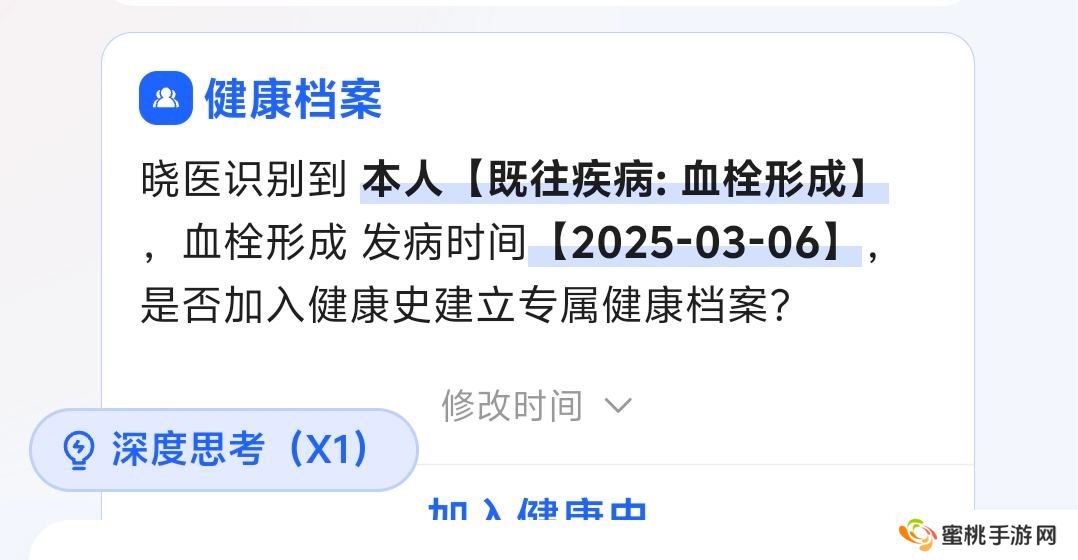 另外值得一提的是,通过这个问题,讯飞晓医识别到我可能患有血栓,还主动建议我添加到既往病史中以完善健康档案,这一点很细节。