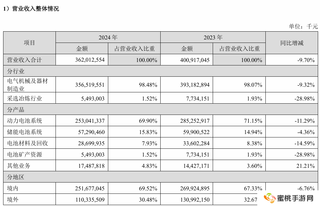 2024 年,宁德时代实现锂离子电池销量 475GWh,同比增长 21.79%。其中,动力电池系统销量 381GWh,同比增长 18.85%;储能电池系统销量 93GWh,同比增长 34.32%。