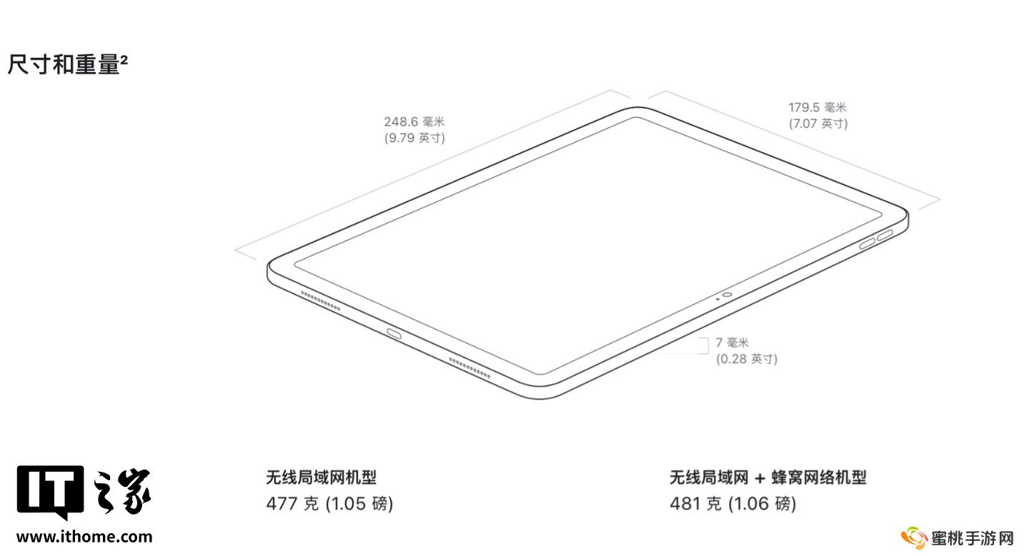 该机搭载“经过调整”的A16芯片(2P3E),配备28.93瓦时电池,号称“使用无线局域网浏览网页或观看视频,使用时间最长可达10小时”,国行使用eSIM卡,配备USB-C 2.0接口。