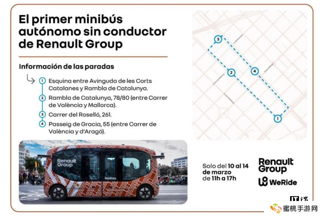 本站 3 月 12 日消息,当地时间 2025 年 3 月 11 日,自动驾驶科技公司文远知行宣布与雷诺集团在巴塞罗那市中心开启自动驾驶小巴(Robobus)试乘服务,这是西班牙首个公开道路前装量产自动驾驶试运营服务。