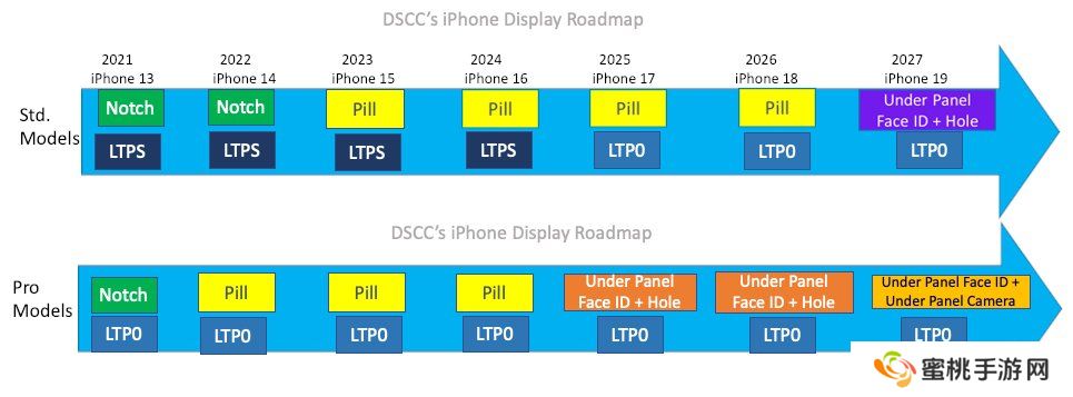 Ross Young 之前表示,苹果将在 2025 年全力以赴,甚至数字基础版型号都可以实现 120Hz 刷新率(本站注:即引入 LTPO 面板)。