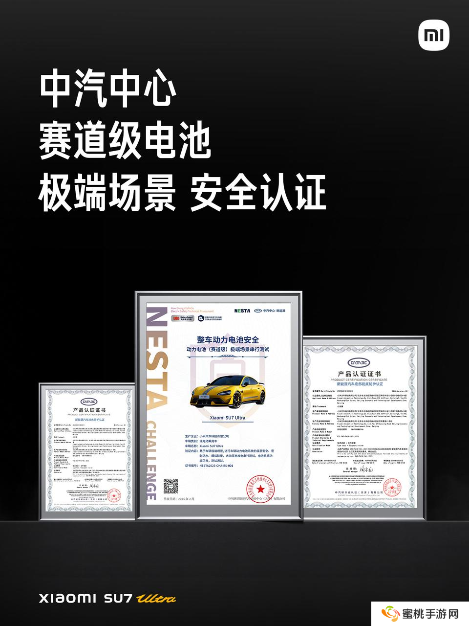 值得一提的是,基于「防弹涂层」的强大性能,小米 SU7 Ultra 还成功通过了中汽中心动力电池(赛道级)极端场景串行测试,并获得了《新能源汽车底部刮底防护认证》。