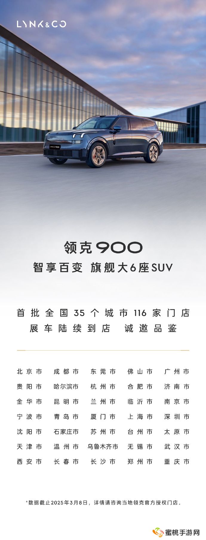 本站 3 月 10 日消息,领克 900 旗舰 SUV 将于今年第二季度上市,现在这款展车陆续到店,首批全国 35 个城市 116 家门店。