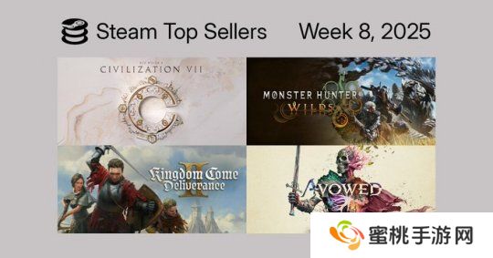 《文明7》位列榜首、《怪物猎人:荒野》第二、上期销冠《天国:拯救2》排名第三。黑曜石新作《宣誓》位列第五,FS社的《艾尔登法环 黑夜君临》开启首轮网测后,也收获了大量玩家的关注,靠着预售登上榜单。