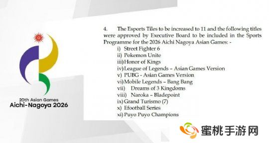 2026年亚运会电竞项目增至11项