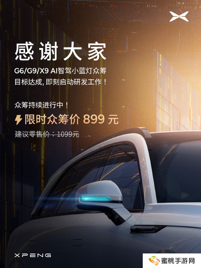 小鹏 G6、G9、X9 AI 智驾小蓝灯众筹目标达成,限时 899 元