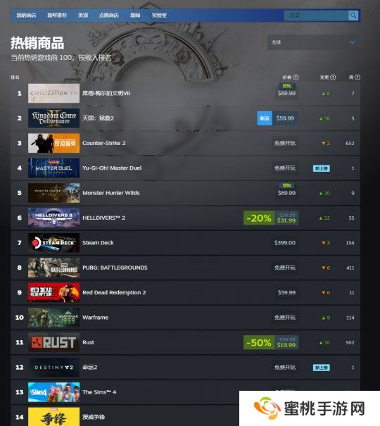 《天国:拯救2》目前在Steam全球热销榜上位列第二名,仅次于《文明7》。