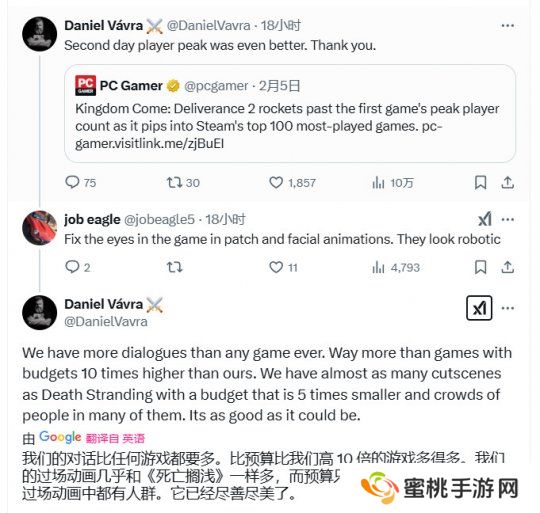 至于《天国:拯救2》的预算, 今年2月6日Daniel Vavra在X上和玩家互动时似乎给出了暗示。