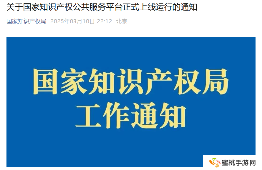 本站 3 月 11 日消息,国家知识产权局昨日晚发布《关于国家知识产权公共服务平台正式上线运行的通知》,平台定于2025 年 3 月 10 日正式上线。