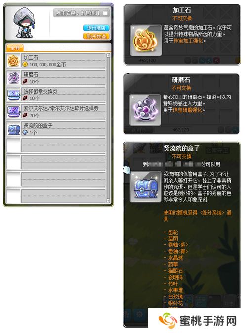 通过凉风村的NPC贤流院学士处可以使用副本货币商店,选择需要的道具进行兑换。