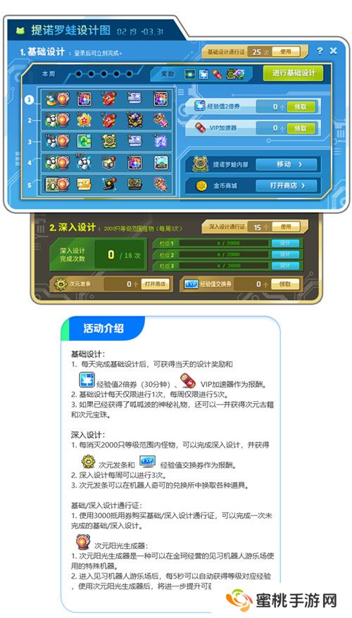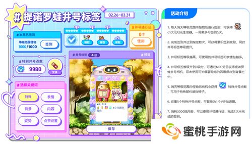 活动期间,左侧图标处参加提诺罗蛙设计图活动,帮助管家机器人克雷德完成提诺罗蛙设计,领取各种礼物!