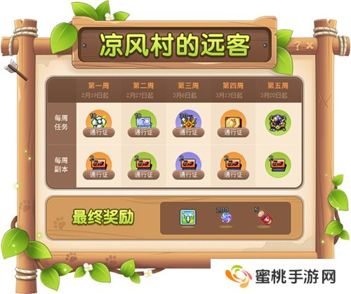 2月19日至3月31日期间,玩家还可参加[血月森林]凉风村远客活动,作为凉风村的远客,给予凉风村帮助,参加每周任务和每周副本任务,领取丰富奖励。