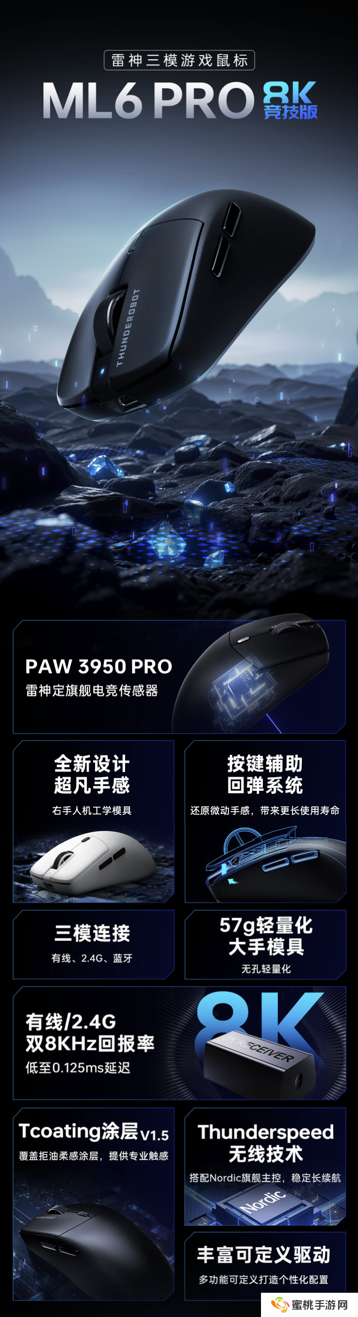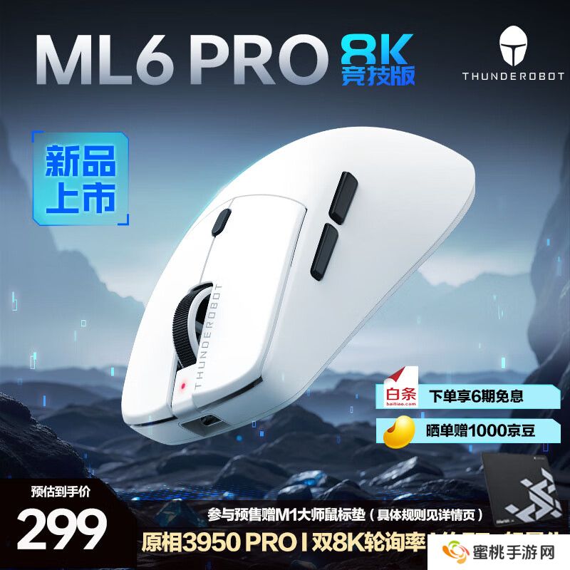 雷神 ML6 PRO 8K 竞技版鼠标上架:PAW3950 PRO 传感器、双 8KHz 回报率,299 元