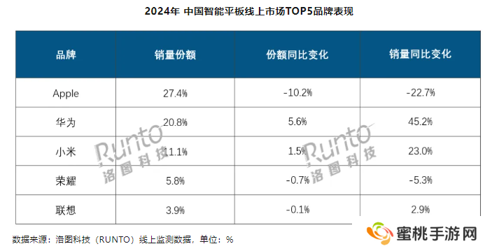 洛图科技:2024 年中国智能平板销量 2879 万台同比增长 2.2%,苹果、华为、小米线上前三