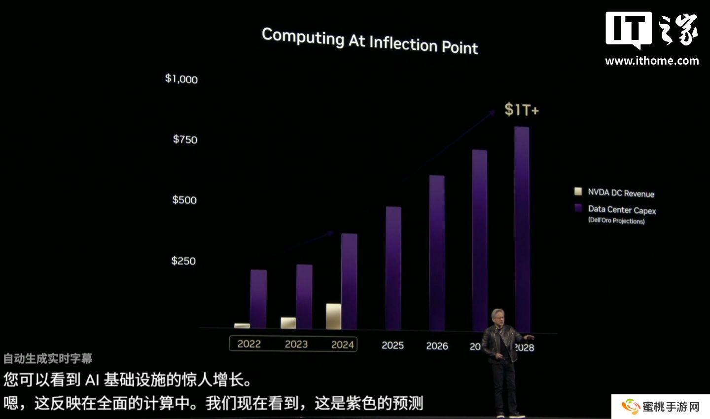 黄仁勋预计,数据中心建设将在 2028 年达到 1 万亿美元(本站备注:当前约 7.23 万亿元人民币)。