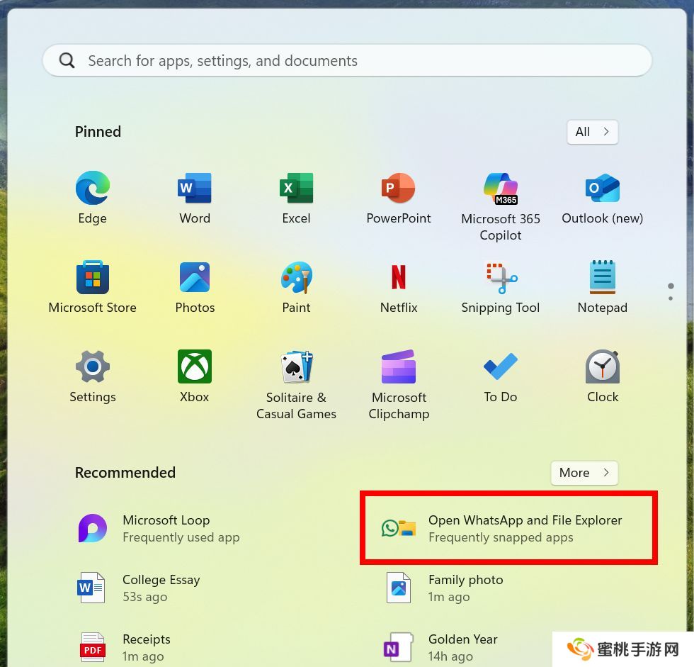 微软正在测试一项新功能,根据用户最可能同时使用的两个应用,在开始菜单的推荐部分推荐应用组合。本站附上截图如下,可以同时打开WhatsApp和文件管理器: