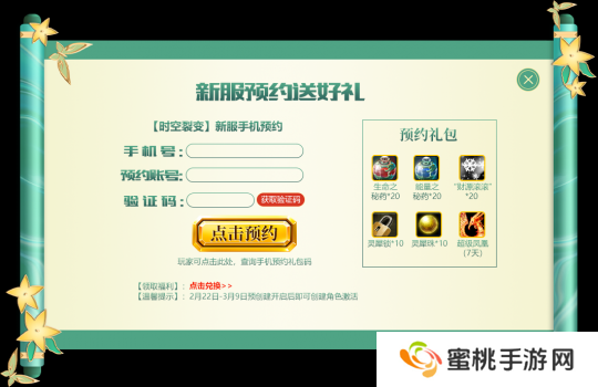 为了让广大游戏爱好者能在新服开启之际第一时间进入游戏,官方特地在明天10:00开启手机预约活动。参与预约的玩家将享有以下特权: