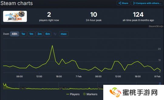 虽然《芯球争霸》是免费游戏,但据SteamDB数据显示,其玩家数量非常少,Steam同时在线峰值仅为124人。该作在Steam上评论数也不多,只有333条,总评为“褒贬不一”。