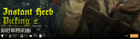 “即时草药采摘II”mod的出现,就是为了帮助玩家们解决这个问题。虽然少了点代入感,但更多的玩家还是以效率为重。当前,该mod的下载量为7.7万次。