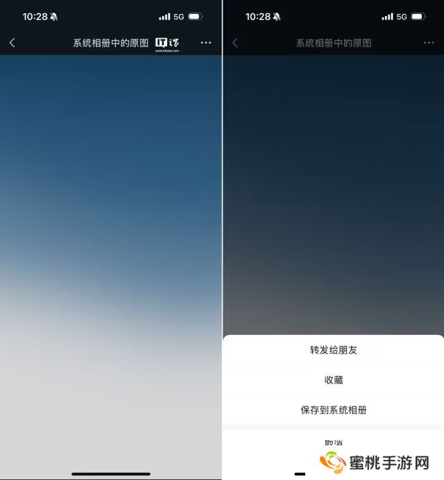 点击该按钮,图片会在“系统相册中的原图”界面中显示,点击右上角的“...”,可以转发给朋友、收藏、保存到系统相册。