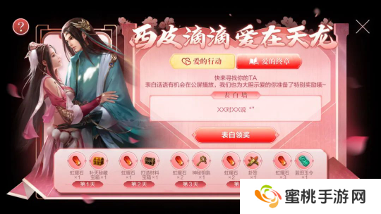 少侠在新服内为心仪的TA表白,就可领取老赵送上的特别奖励——表白签到五日即可领取蓝田玉令等好礼。
