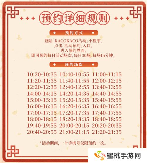 玩家可前往淘宝搜索【KACOKACO活动】,登陆淘宝,点击「活动预约」入口,进入预约界面,即可预约每日活动场次。