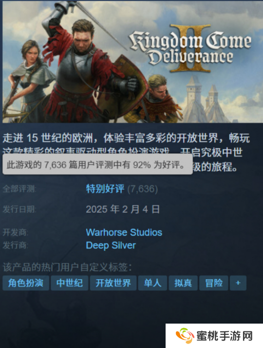 随着2月4日《天国:拯救2》正式发布,本作在Steam上的首日在线玩家人数就达到了16万人次。销量突破100万份,发布当天就实现了回本。高达92%的好评率,也说明了外界对这款游戏的评价有多高。