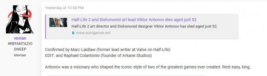 据外媒Eurogamer消息,《半条命2》美术总监兼《耻辱》设计师Victor Antonov现已去世,享年仅52岁。