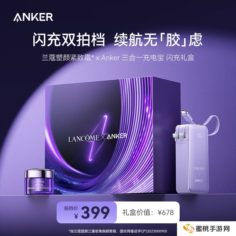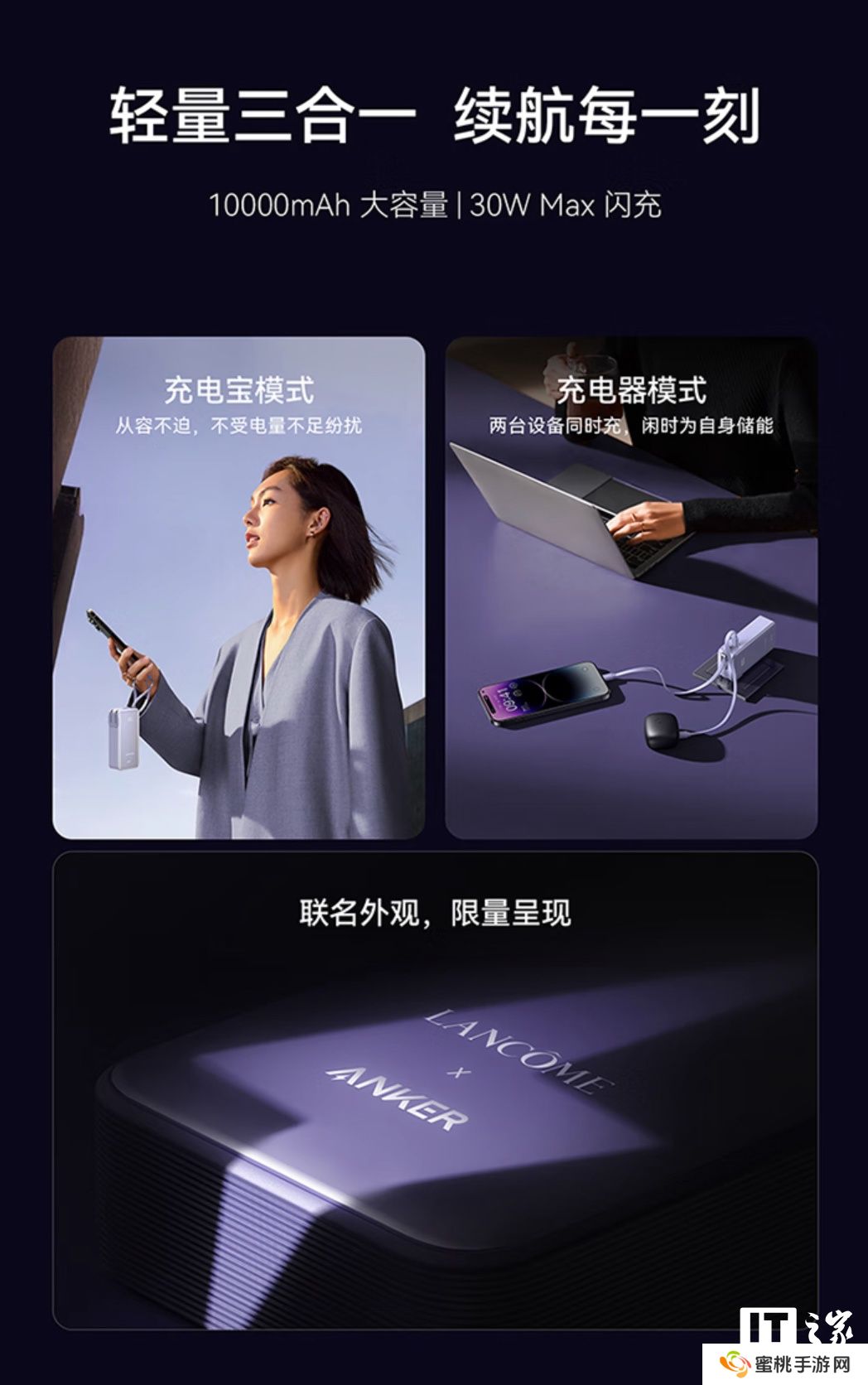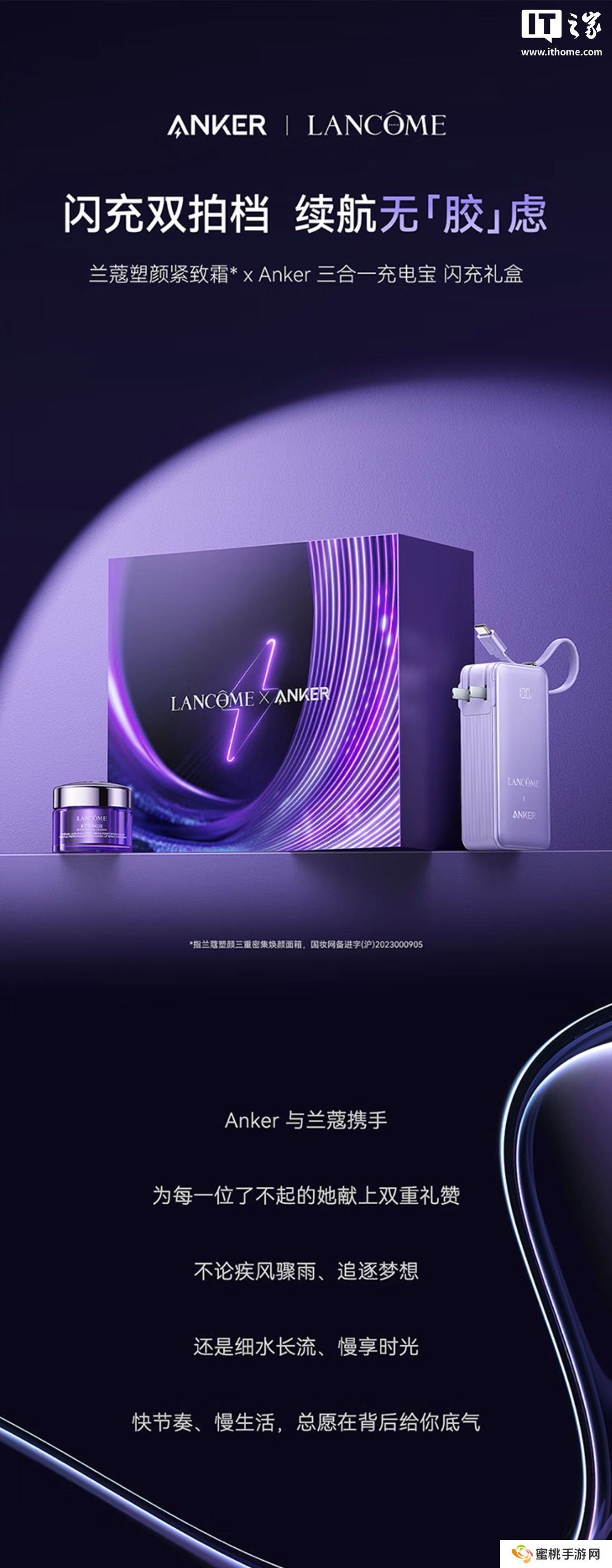 安克推出“兰蔻素颜紧致霜”联名“能量棒”30W 三合一充电头 / 移动电源礼盒,399 元