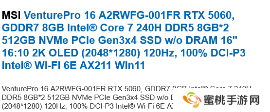 除上述宏碁笔记本外,188号 @momomo_us 还发现了另一款搭载 RTX 5060 8GB笔记本电脑 GPU 的微星笔记本的信息: