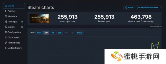 根据SteamDB数据,《怪物猎人:荒野》第二次BETA公测当前同时在线25.5万人,仍在继续增长中,第一次BETA公测的峰值为46.3万人。