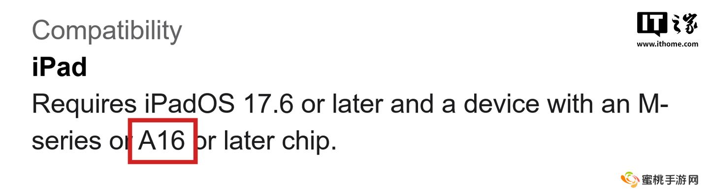本站查询美国 App Store 页面信息,Final Cut Pro 页面在兼容性一栏中,写道:“需要 iPadOS 17.6 或更高版本以及具有 M 系列或 A16 芯片的设备。”